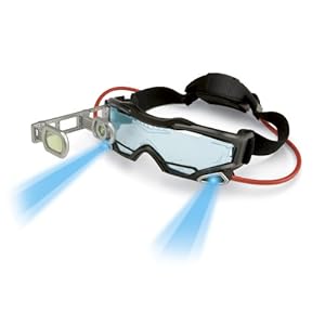 Take your sleuthing to the next levelwhen you launch spy missions under the cover of darkness. These night goggleswill be your best spy partner during covert operations. Features Two built-in,super-bright blue LED lights, Fold-outsighting scope with crosshairs, Blue-tinted lenses for night vision twoyellow-tinted magnifying lenses. Requires 3 ?AAA? batteries, not included.
